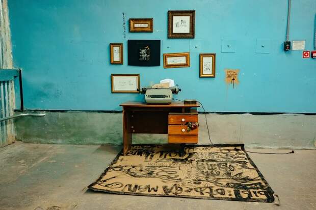 Автор предлагает посмотреть на библиотеку как на возможность сделать выбор между прошлым и будущим. В экспозиции присутствуют острые контуры, индустриальные фактуры, тексты, собранные в плотные «кирпичи» смысла. Каждый фрагмент — как личная надпись на стене, попытка закрепить собственное право на знание.